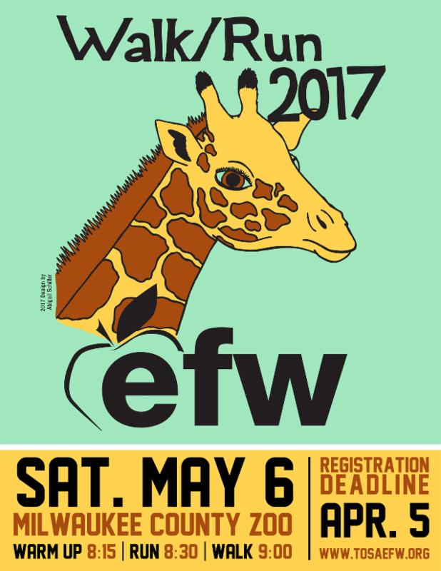 The 2017 EFW Walk/Run will be held on Saturday, May 6th at the Milwaukee County Zoo with an 8:15 a.m. warm-up and 8:30 a.m. race start time.