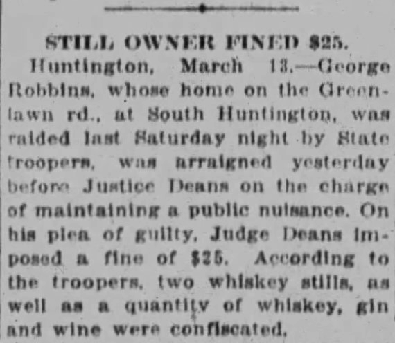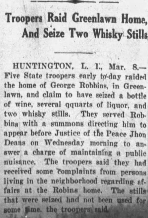 Troopers Raid Greenlawn Home, And Seize Two Whisky Stills