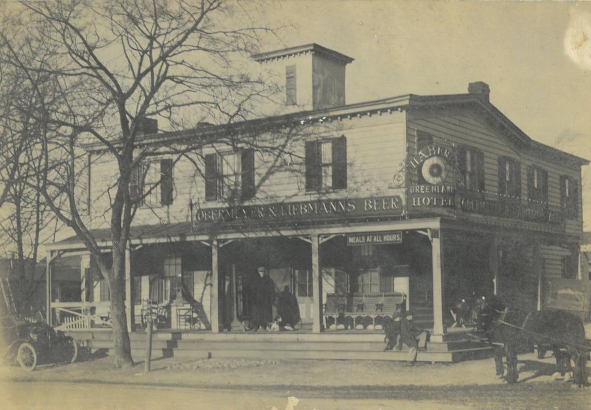 Considered the first hotel in the village, it was built in 1870 by Casper Henry Ritter. The hotel had several different owners and managers, resulting in various names: Ritter's, Merrill House, Ward's Country Inn, and Haber's Greenlawn Hotel.