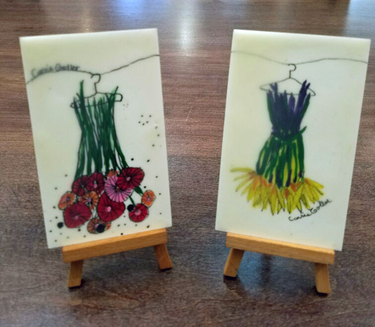 | Spring Flower Dresses on easels |