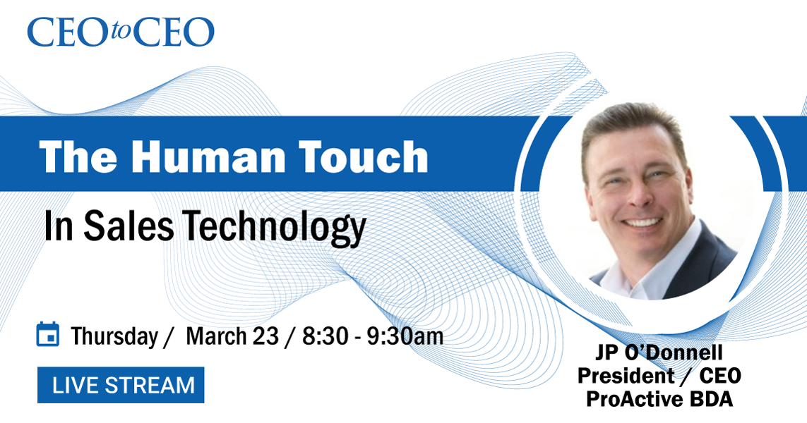 Join the livestream on Thursday for insight from JP O'Donnell, Founder and CEO of ProActive, and a highly accomplished and successful sales executive with extensive leadership experience directing teams on the local, regional, national, and international levels.