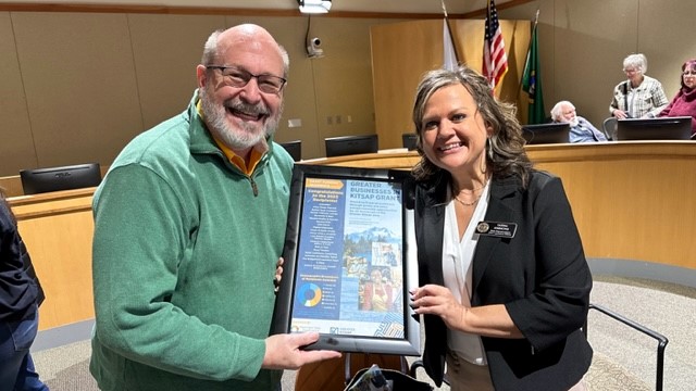 Representative Tarra Simmons of the 23rd Legislative District recently spoke at a series of town hall meetings for the district and was presented with a commemorative print in honor of the Better Businesses in Kitsap Grant, administered by the Greater Kitsap Chamber. Rep. Simmons was responsible for securing $200,000 in small business grant money for the 23rd district and last month the Chamber was able to award 20 small businesses with $10,000 grants.