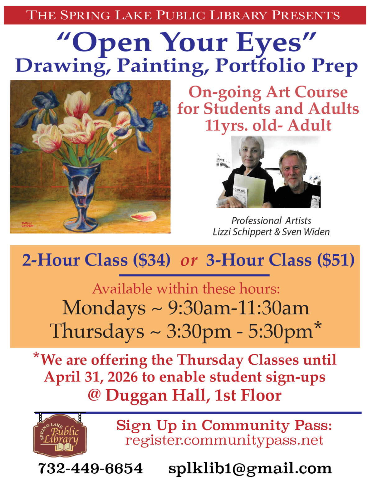 Please note that April's class will be the second Friday, due to Good Friday falling on our regular day.