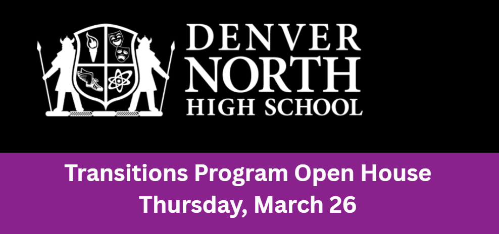 Are you a Denver Public Schools student (or family member) participating in the special education Transitions Program? If so, mark your calendar for an open house for Transitions students on Thursday, March 26, from 5:00 p.m. – 7:00 p.m. at North High School, 2960 Speer Blvd, Denver, CO 80211.