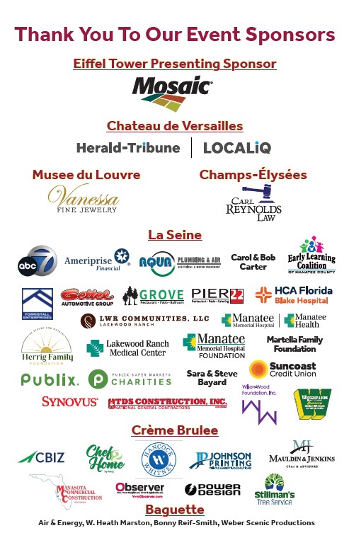 Attendees were moved by the very personal client testimonials from individuals right here in Manatee County who have been positively impacted by our life-changing work! You can watch the 2025 Tropical Nights Under Paris Lights Impact Video by clicking here. If you wish to make a donation, it's not too late! Click here to donate!