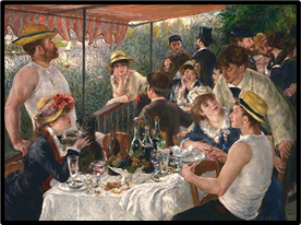 If you are not familiar with Renoir’s “The Luncheon of the Boating Party,” it is a painting that he did of some of his friends, fellow impressionist artists and their models. Let’s do the same thing and come to the gallery to talk about art, share food, wine/beer and a good time. We hope to see all of our members and their spouses there.