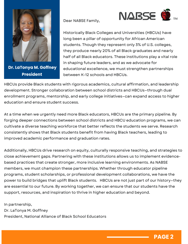 National Alliance of Black School Educators | 4005 Wisconsin Ave. NW #5704 | Washington, DC 20016-9997 US