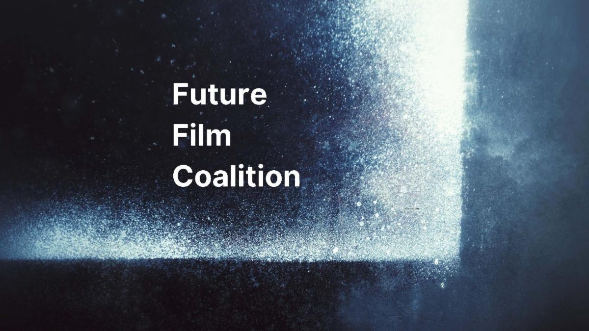 | | Image description: A blue-tinged grainy-textured image of hard-edged light and shadow features text: Future Film Coalition. | | |