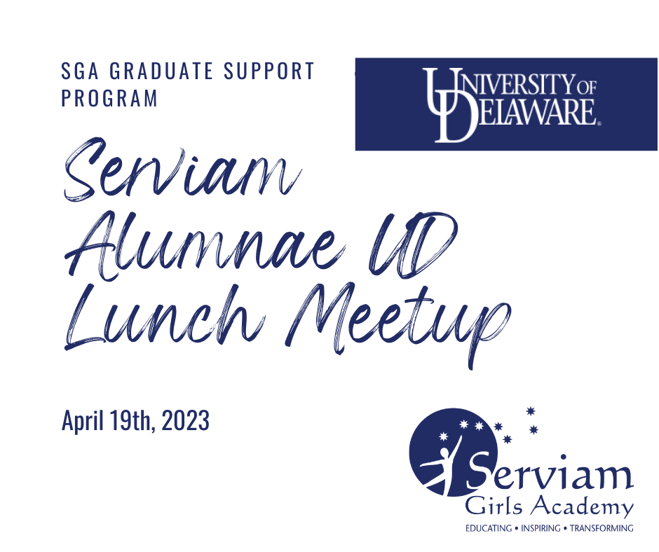Save the date for April 19th! This event is for Serviam alum who are currently attending the University of Delaware to meet-up for lunch with Ms. Edoukou and Ms. Lucyk.