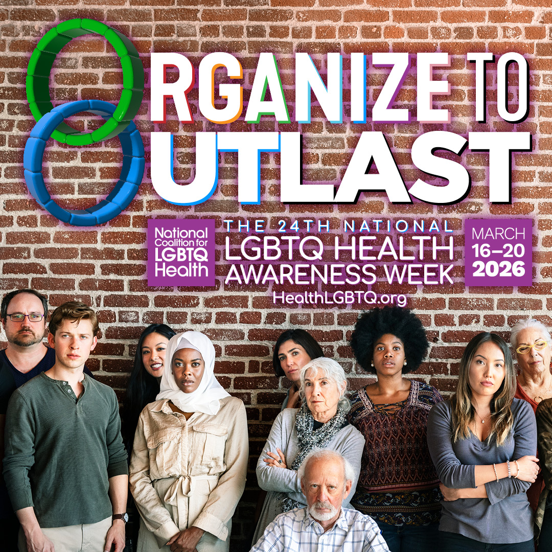 The National Coalition for LGBTQ Health announces that the theme for this year’s National LGBTQ Health Awareness Week, being held March 16 – 20, 2026, is “Organize to OUTlast.” The theme calls on the LGBTQ community and those who provide healthcare for LGBTQ communities to organize for LGBTQ health against regressive forces in policy and culture. The Coalition created the National LGBTQ Health Awareness Week 24 years ago to raise awareness about timely and relevant issues impacting LGBTQ healthcare.