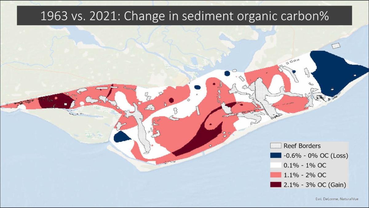 Dr. Josh Breithaupt has been looking at several questions related to biogeochemistry in the Bay. He has found that organic carbon in Apalachicola Bay sediments has been increasing since the 1960s although river flows have decreased. He is also looking at potential impacts of mangrove encroachment in the Bay and has found that oyster shells dissolve faster in mesocosms with mangrove litter in the soil. The movement of mangroves into Apalachicola Bay may therefore have impacts on intertidal oyster reefs.