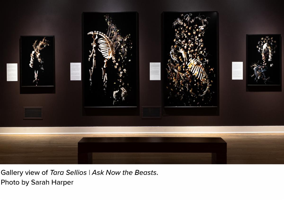 Tara Sellios's photographs highlight the beauty of the grotesque. Sellios creates still-life vignettes from organic materials, including animal bones, insect specimens, and dried flowers, which she photographs using a large format camera. Printed at a grand scale, Sellios’s photographs capture the vivid details of her materials.