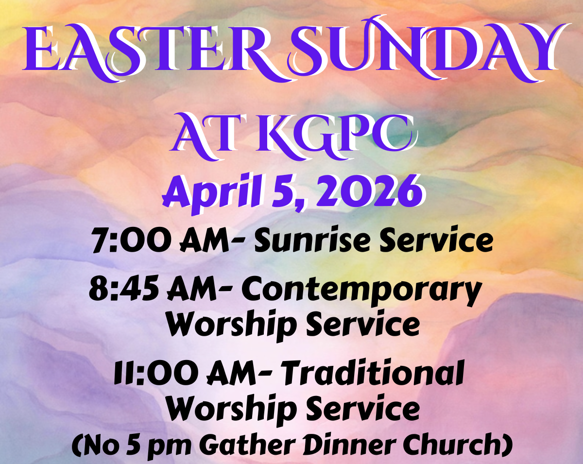 If you’ve seen God at work in this church or in your life, write a short paragraph and send it to the church office (office@kgpc.org). Anonymous stories are accepted as well as those who don’t mind their name being known