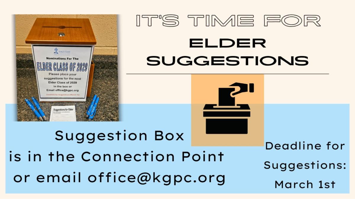 The Members of Session are always open to have conversations about what is happening in the church. Let's Talk!