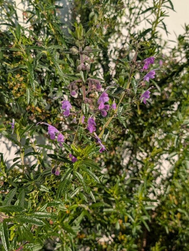 One of my other favorite natives is a continuous bloomer called Trichostema x purpusii. This plant is a more durable version of Woolly blue curls and has sweet-smelling blooms that attract pollinators throughout the year.
