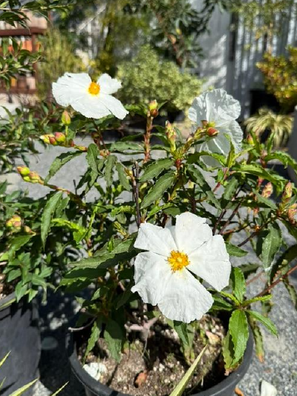 Of course, there are some individual plant varieties I'd like to mention that are some of my current favorites at the nursery. Cistus 'Blanche' is one of my favorite rockrose shrubs. A few reasons are that it is a very durable plant and has white flowers that look like fried eggs, which honeybees go crazy for.