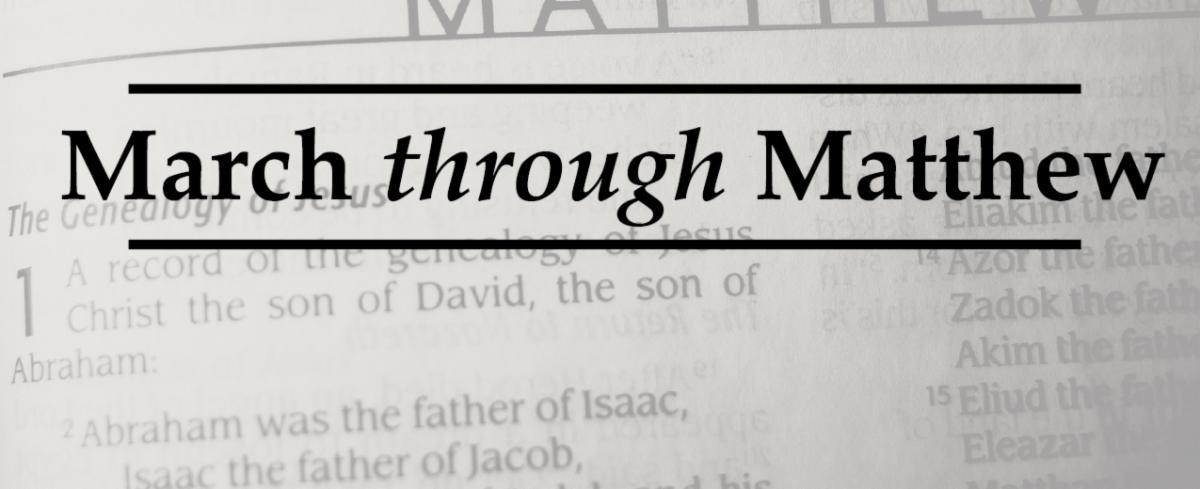PRAYER: Dear God, thank You for giving us Your Good News and story of salvation through the Gospel of Matthew. You sent Jesus to save sinners--like us. During our March through Matthew’s Gospel, help us to grow in the grace and joy of Jesus and be mindful of Your presence and love in our lives. In the Saving Name of Jesus, Amen.