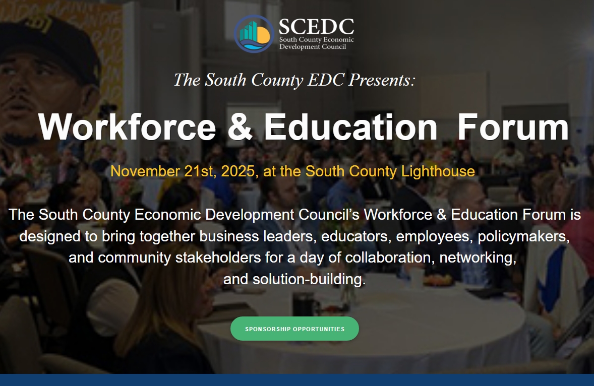 Join the South County Economic Development Council (SCEDC) for its annual Workforce & Education Forum — a vital event bringing together business leaders, educators, employees, policymakers, and community stakeholders.
