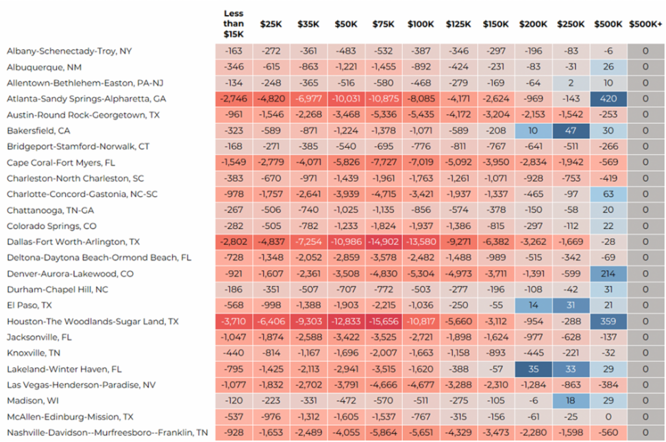 Unsurprisingly, the income brackets who need the most additional homes were in the lower to middle-class range. However, the higher income brackets weren't left out: NAR and Realtor.com estimated that East Tennessee needs about 3,602 additional homes for those making $100,000 or more annually.