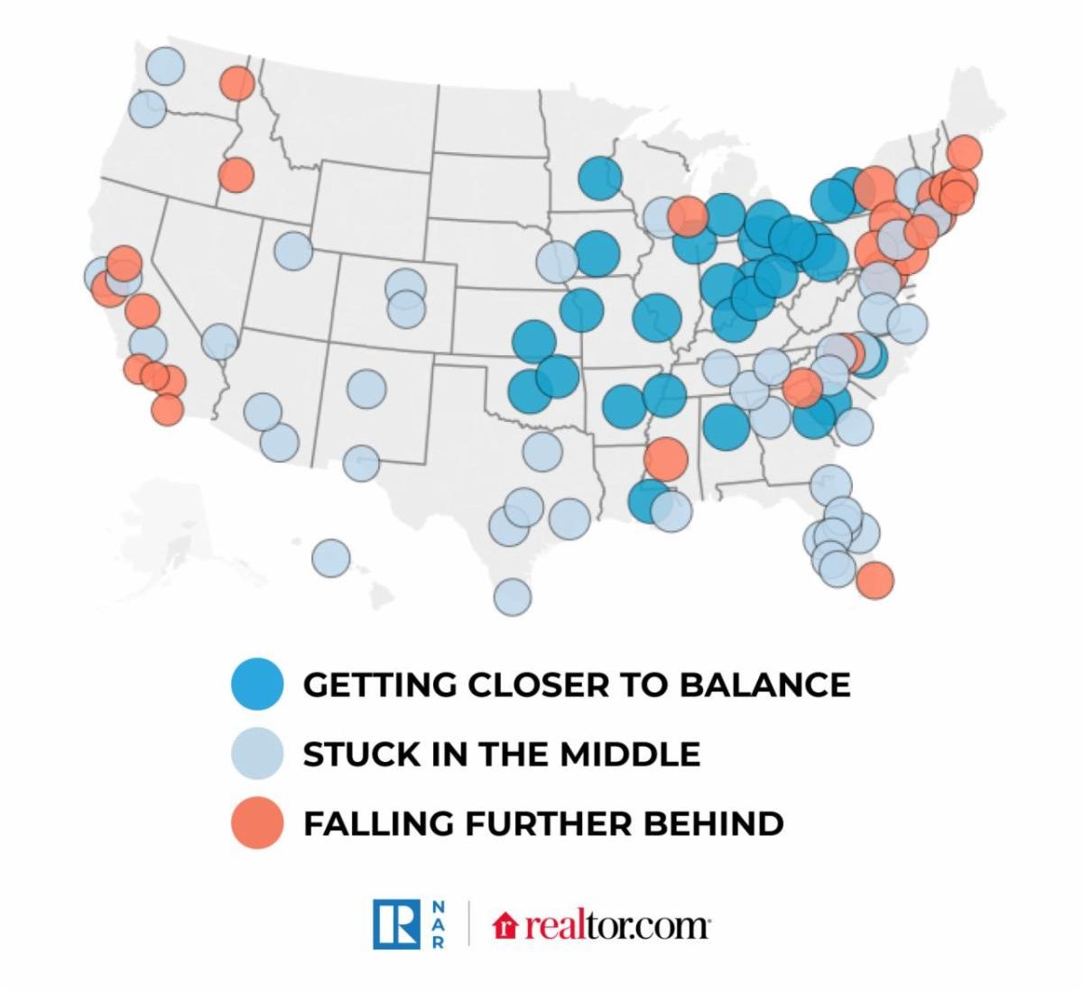 NAR and Realtor.com recently teamed up to share data and estimate housing needs in each metro area. Nationally, middle and upper-middle class buyers have seen the most improvement, while lower income buyers have seen their inventory need grow and are increasingly being priced out of the market.
