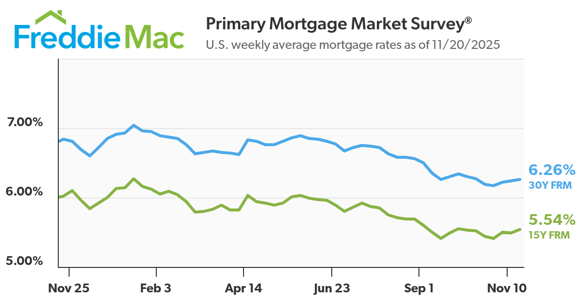 According to Freddie Mac's Primary Mortgage Market Survey, the 30-year fixed mortgage rate (30Y FRM) rose slightly to 6.26% as of the week ending October 30. This rate is down 0.58 points from one year ago at 6.84%.