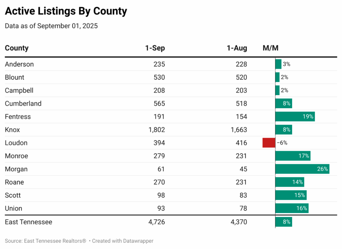 East Tennessee home sales in August saw a healthy 2.1% increase over July, and a 7.4% increase over August 2024.