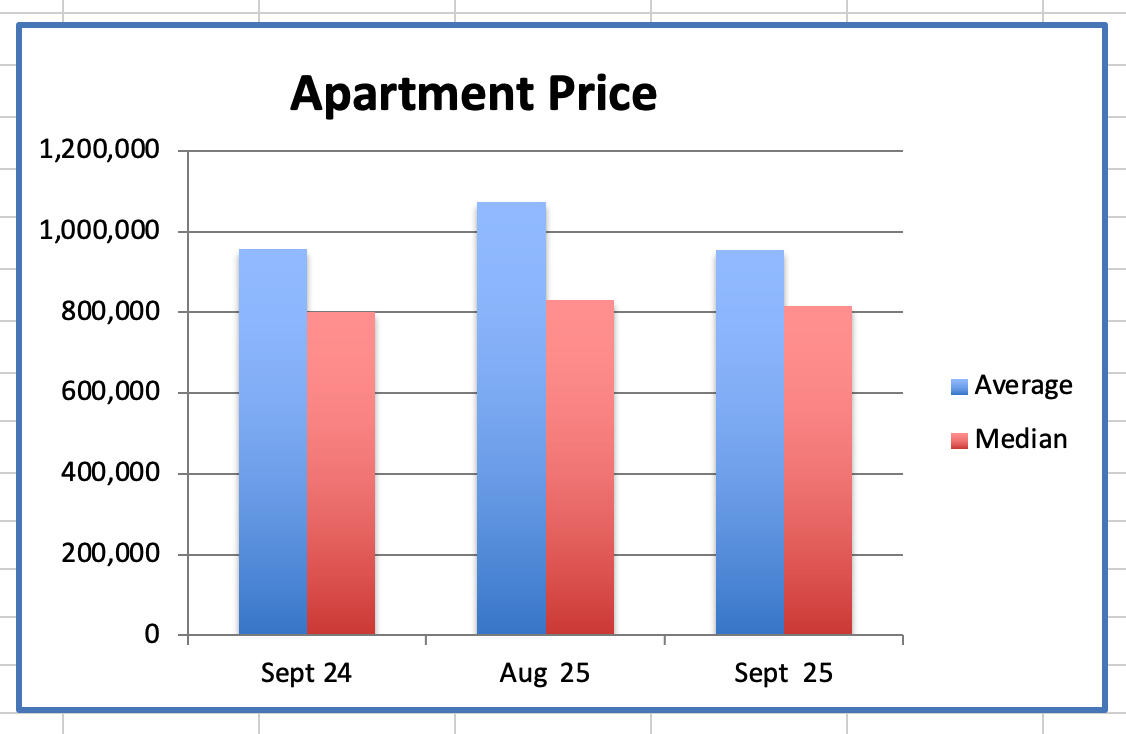 The Apartment average price was $955K, down 20% from $1.199M, the peak, in January 2018.