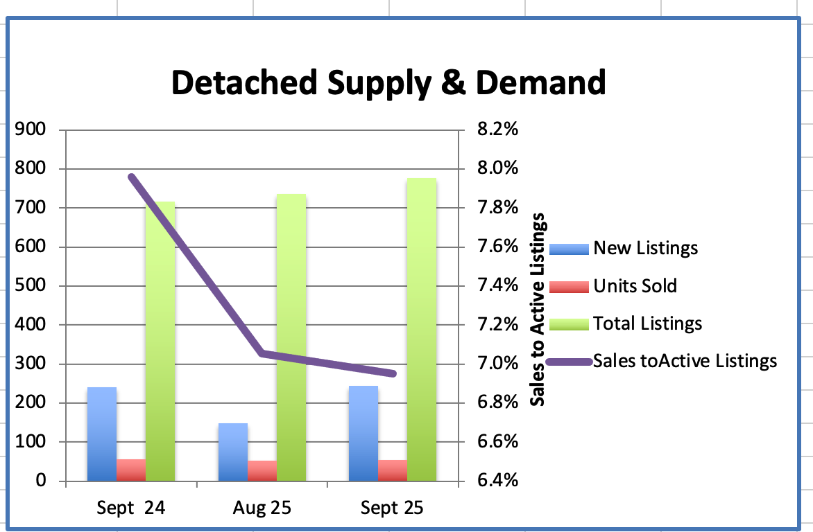 The total home supply in Metro Vancouver in September is up 14.4% year over year and that is 36.1% above the 10 year seasonal average while sales were up 1.2% over September 2024 and that is down 20.1% below the 10 year seasonal average.