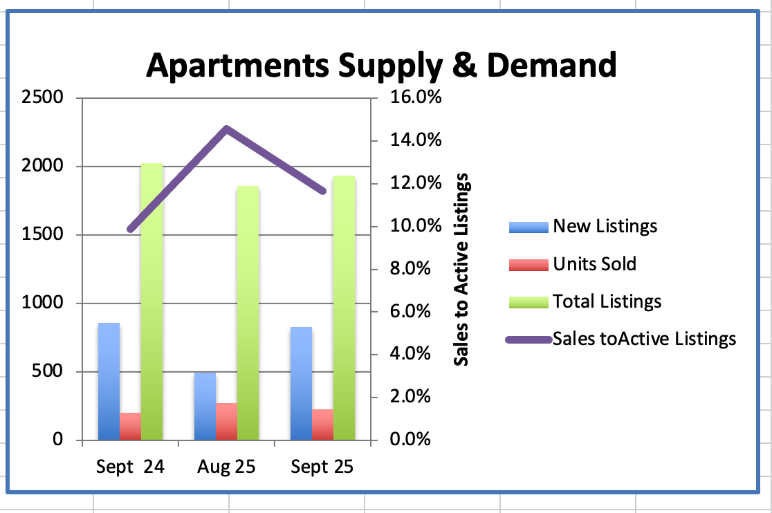 We had 226 Westside Apartment sales in September, compared to 271 sales last month.