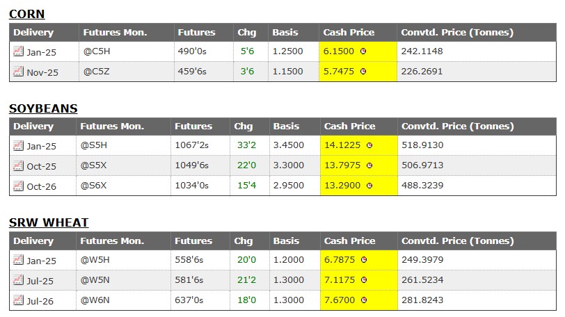 -Today was the first trading day of the week following MLK day, and corn, soybean, and wheat futures all pushed higher with strong gains to prices.