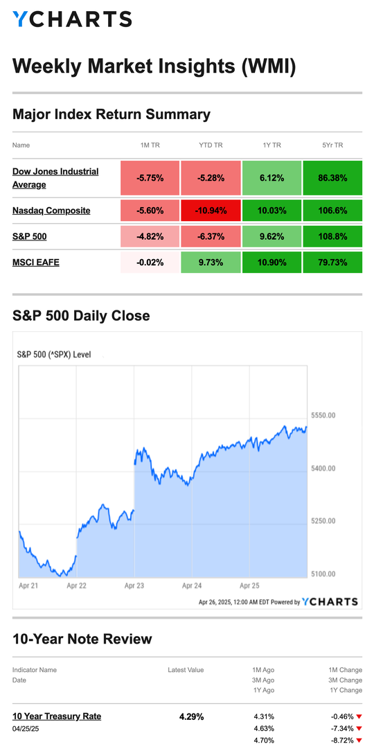 Source: YCharts.com, April 26, 2025. Weekly performance is measured from Monday, April 21,