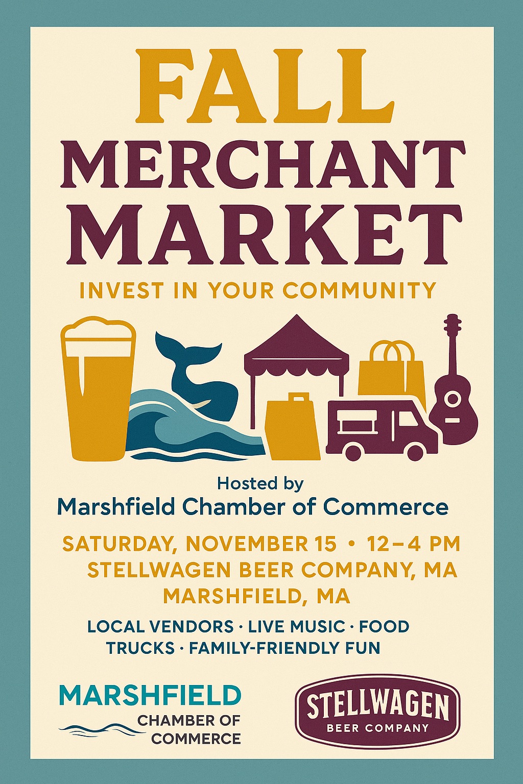 | | Our Fall Merchant Market was held on Saturday November 15th from 12-4 at Stellwagen Beer Company! Food truck, live music, vendors and fun! It was a great day with a great turnout! Did you know? Marshfield Chamber Members are invited to our Fall and Summer markets for FREE! | | Please try, whenever possible, to support local! Your community depends on you!! | | |