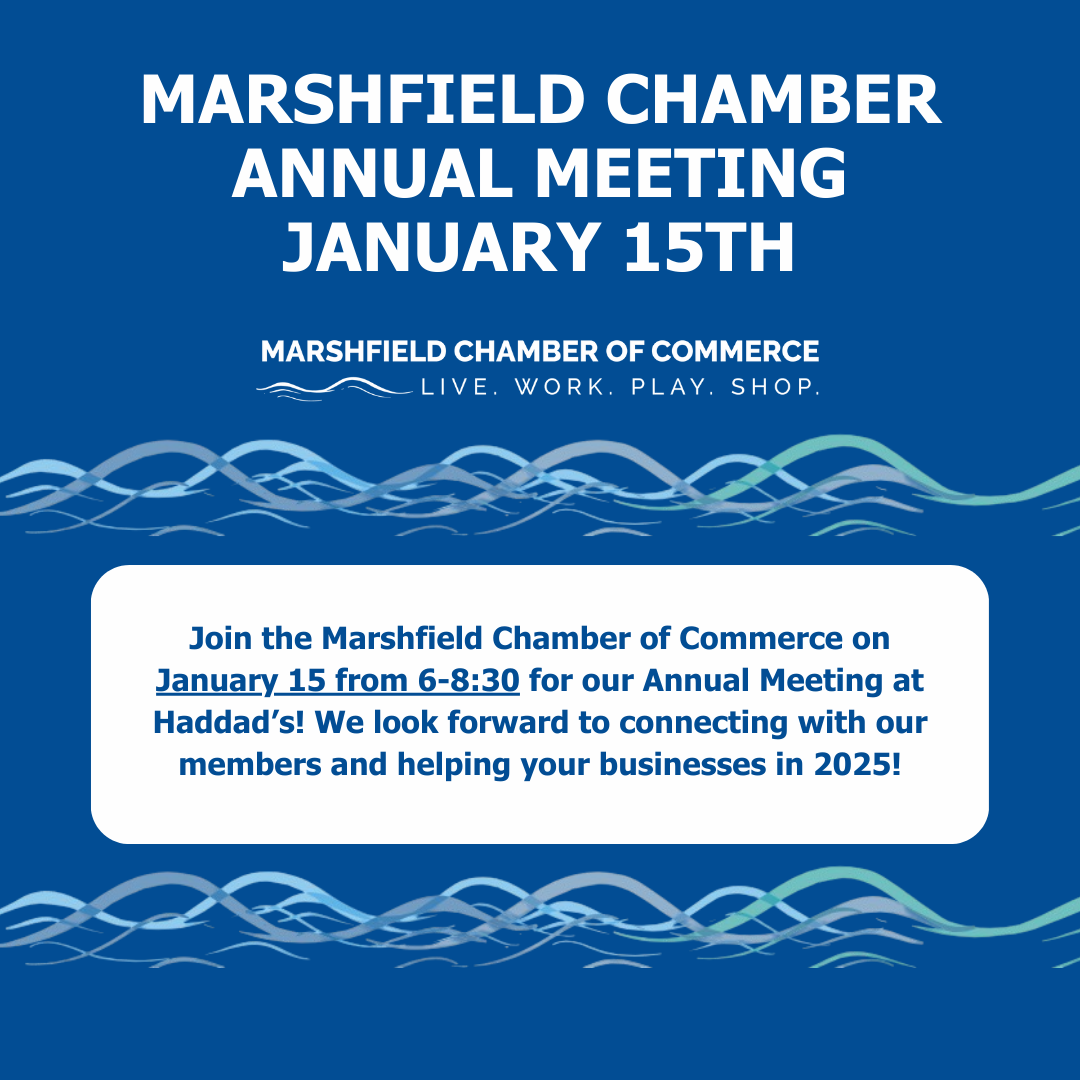 2024 was an amazing year for the Marshfield Chamber! We are looking forward to welcoming you to our Annual Meeting on January 15th. 2025 looks to be a promising year for small business across the region. Thank you for being an essential part of the Marshfield Chamber of Commerce. Together, we continue to strengthen our local economy, build lasting connections, and create opportunities for all. Here’s to a joyful holiday season and an exciting year ahead!
