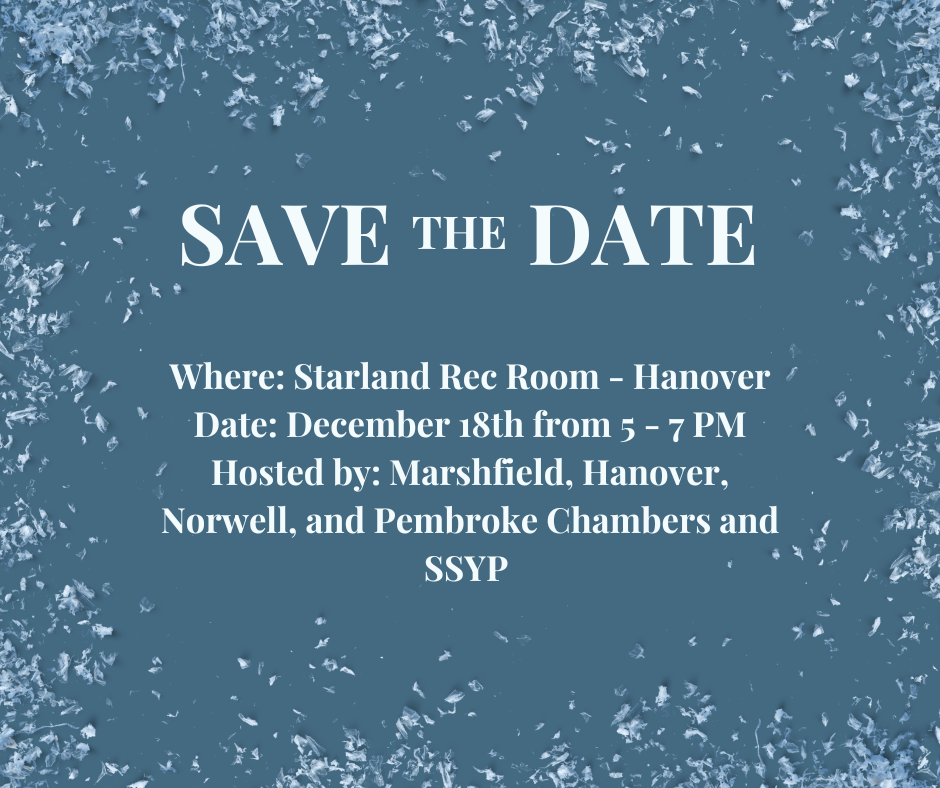 Come join the SSYP's, Marshfield, Hanover, Pembroke and Norwell Chambers for our collaborative Holiday Party at Starland Sportsplex & Fun Park - Rec Room Bar & Grill in Hanover. This will be a great opportunity to network with other local chamber members and enjoy the Holiday Season!