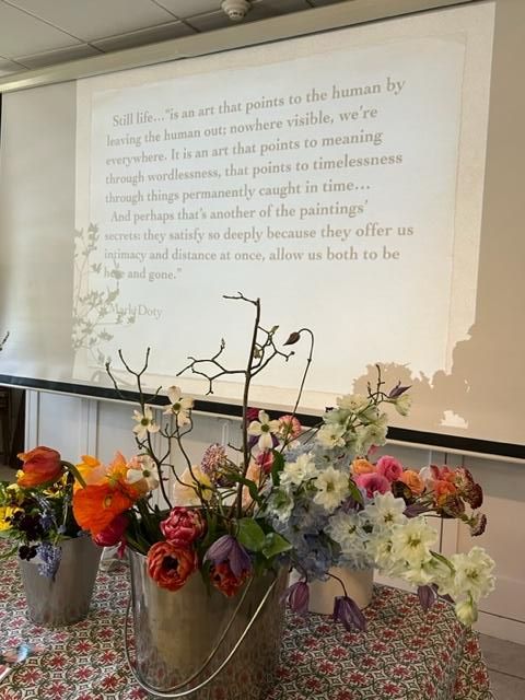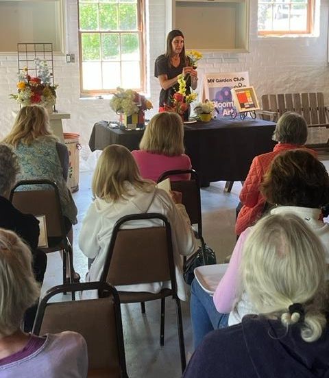 Our speaker was writer, designer, photographer (and new MV Garden Club member), Christin Geall. As a prelude to our Blooming Art event, Christin brought us the 'Art and Ideas of Dutch Floral Still Life' via a power point presentation, and a live floral demonstration that she created as attendees observed Christin's creation of the arrangement and asked questions. The program was attended by 50 people, consisting of existing members, three new members who joined that day, and 3 guests from the Falmouth Garden Club! The topic paired nicely with the members plant sale which was hosted by the Greenhouse Committee. Members and guests purchased plants and Christin sold a beautiful book from her 'Cultivated' collection along with floral puzzles and her photography note cards.