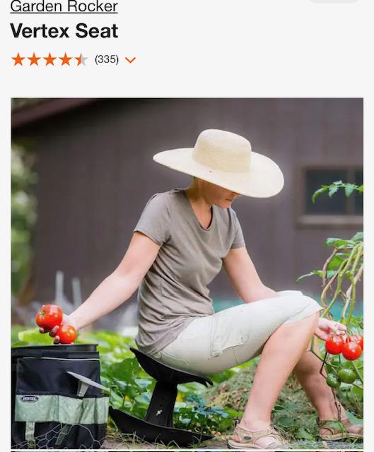 NOTE: This seat is ergonomic and Kathie swears by it...it can be found on a number of sites, not recommending any one in particular...just Google Vertex Ergonomic Garden Seat...its a game changer for those with bad knees or back! Here's a pic of it.