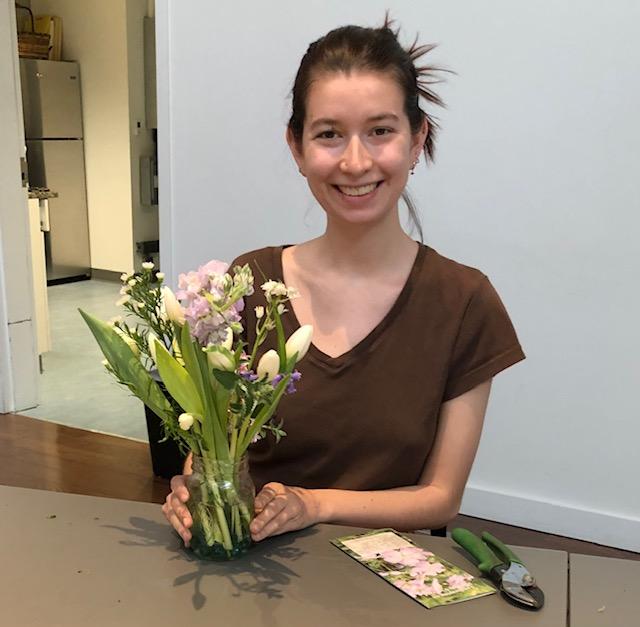 The lovely Christin and her completed floral design.