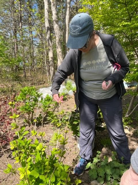 On May 17, Kathie once again hosted a hydrangea pruning demo at her WT home...this time, it was on the Spring pruning of hydrangeas, the macrophylla variety and other lesser known varieties that set flowers on old wood. Kathie explained why we need to carefully examine the plants, the wood and the hydrangea buds before proceeding. (As I trimmed my own macro hydrangeas after the demo, I could still hear Kathie's voice saying, "DEAD IS DEAD!") There is lots to learn and know about hydrangea pruning, so having an in-person demo was quite helpful for those of us who are hesitant pruners.