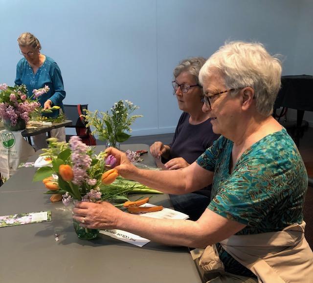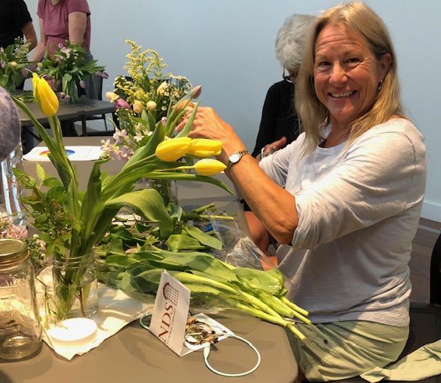 Flowers were provided by Morrice Florists for the Saturday before Mother’s Day workshop that had a long wait list. Participants were so excited. They jumped right in and the smiles in these photos indicate how much fun it can be to arrange flowers.