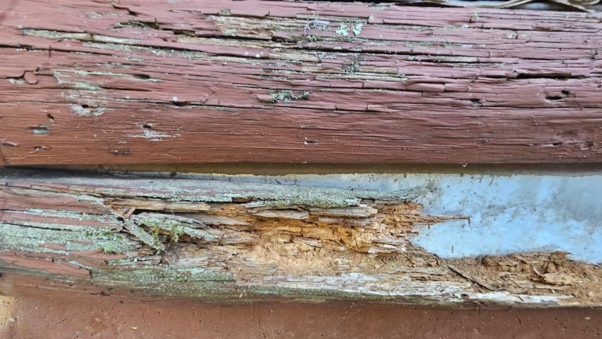 The logs are affected in different areas with dry rot or carpenter ant damage,