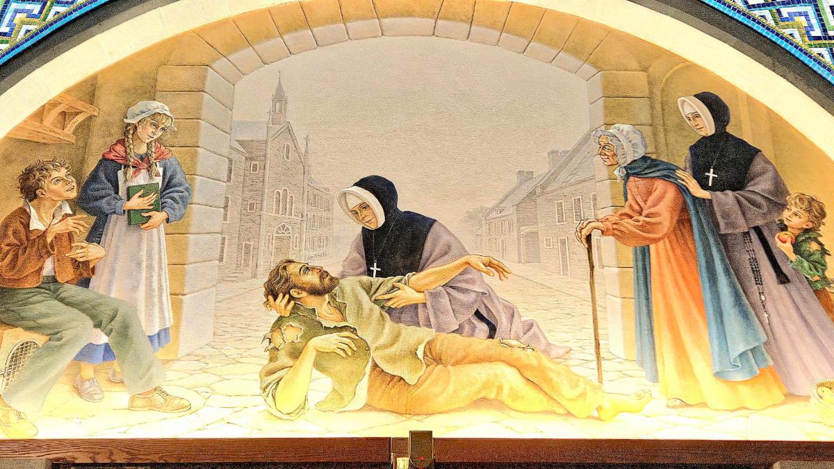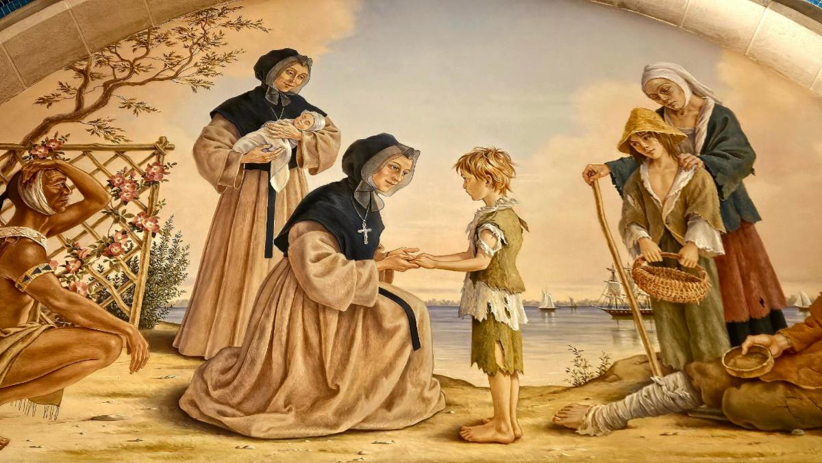 | | The Significant Role of the Nuns in Canada | | The Basilica of Sainte-Anne-de-Beaupré in Québec City, one of the oldest pilgrimage sties in North America, due to the many miracles and cures wrough tafter honoring St. Anne here. Within the larger Shrine, some of the pivotal roles the nuns played in the settling of Canada are depicted below, where a picture is worth a thousand words: | | |