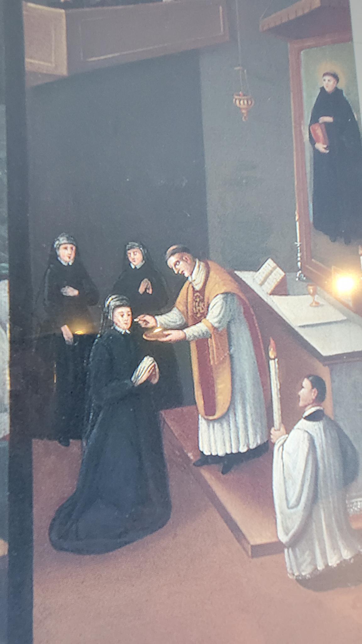 Her sudden death at the age of twenty-two came as a great shock to her community. On March 6th she was late into the refectory for her evening meal, having been delayed by her infirmary duties; so she was eating alone, when she was seized by a sudden pain. A doctor was called but it appeared to be only colic. Everyone expected that she would be better the next day, but the spasms became worse and she died in the evening of March 7th 1770.