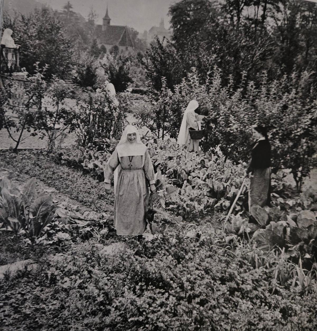 The joy-filled faces of Sisters in their garden, providing much of their own food.