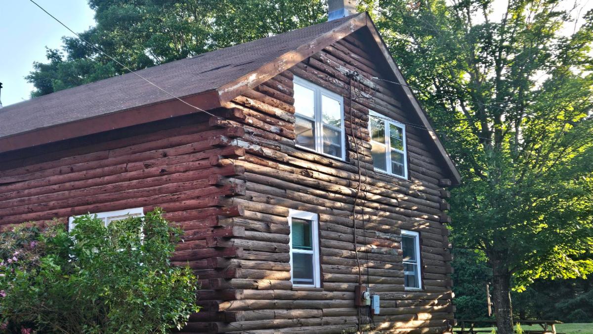 | | | | The future convent will need several repairs and upgrades. As seen in these photos, several of the logs forming the home's exterior (real logs, not log siding) need either repair or replacement. A possible option may be that this end of the home will be extended to increase the size of the future chapel. An interesting tidbit, many of the logs used in the the creation of the exterior walls were taken from the woods surrounding the home. | | |