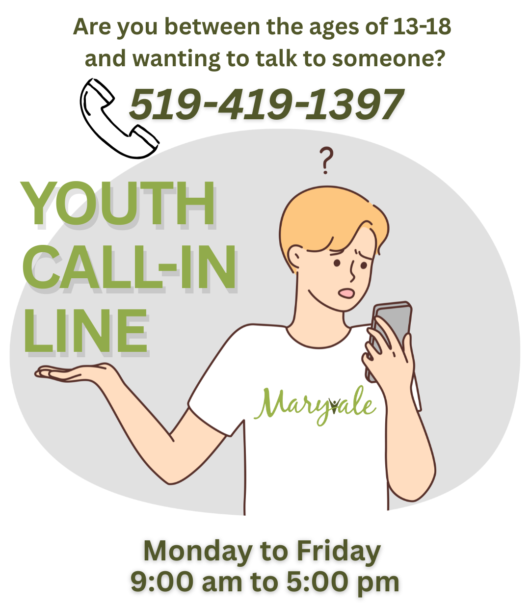 LGBT Youth-Line (Sunday to Friday; 4:00 p.m. to 9:30 p.m.)