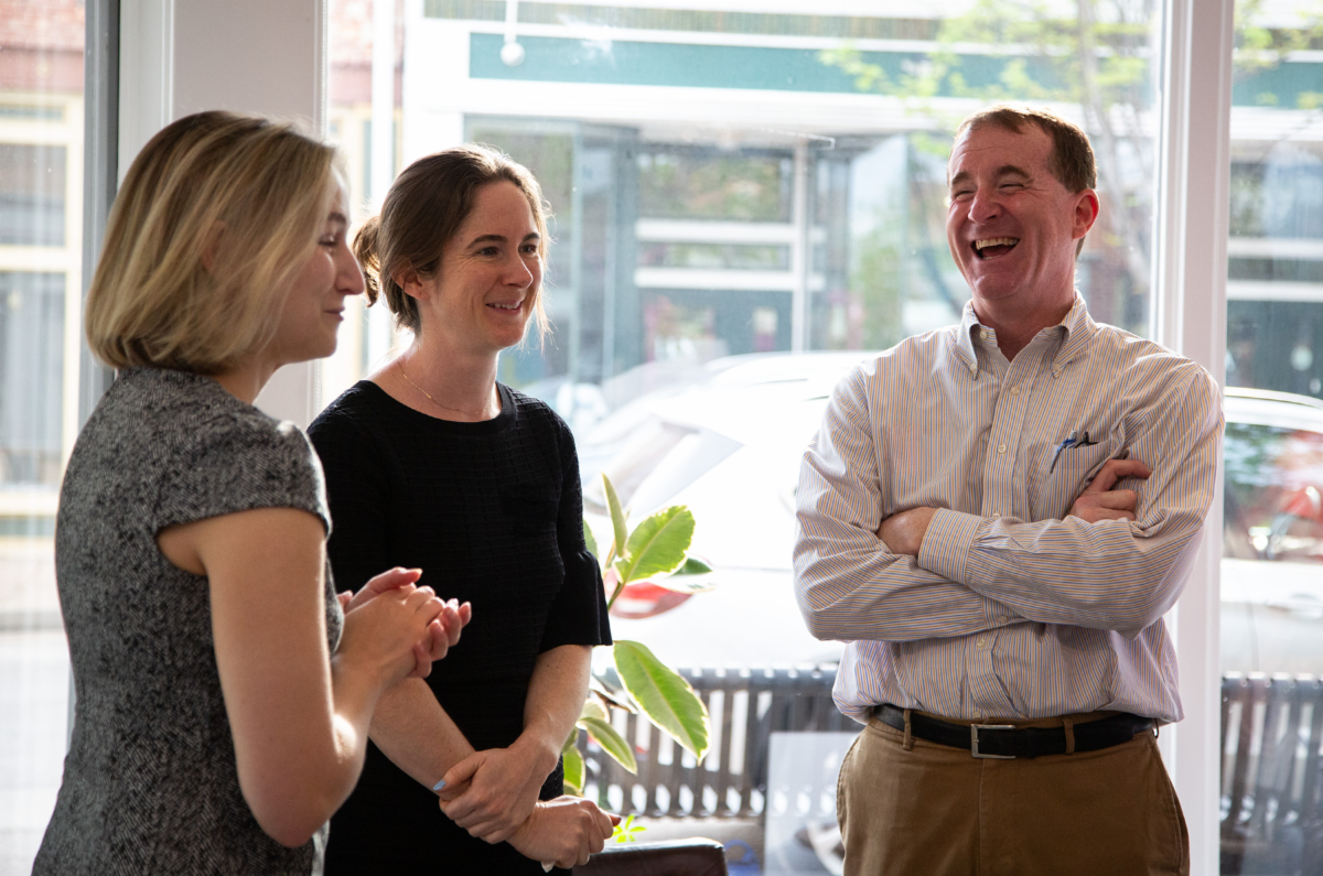| | | | ABOVE: Pinky Hunter, Liz Larsen, Missy Waldman & Tijuana Henderson. | | Thank you to everyone who joined us on April 24th for a special Donor & Volunteer Happy Hour at the Neighborhood Advocacy Office, to highlight their work in the community. Peter Hoffman, Neighborhood Advocacy Managing Attorney, gave a program overview and welcomed guest speakers Sean Spencer, Executive Director of Tower Grove CDC and neighborhood advocate Tonnie Smith (pictured below right). | | | | |