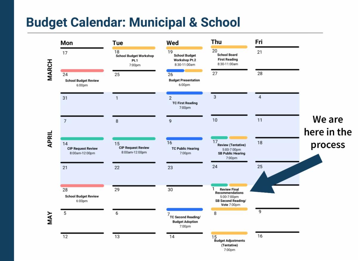 The Town Finance committee met three times in April to review the department and capital budgets. Their final budget meeting is tonight at 5:00pm to put together their formal recommendations to the Town Council. Currently, the committee has proposed to add funding for full-time public safety positions, pickleball courts, and lights at Peterson Field, with a desire to keep the tax rate increase to less than 4%. After tonight's meeting (view on YouTube), the Town Council will hold their second reading and vote on the budget next week on May 7.