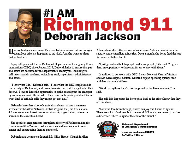 April's #I am Richmond 911 honoree is Deborah Jackson