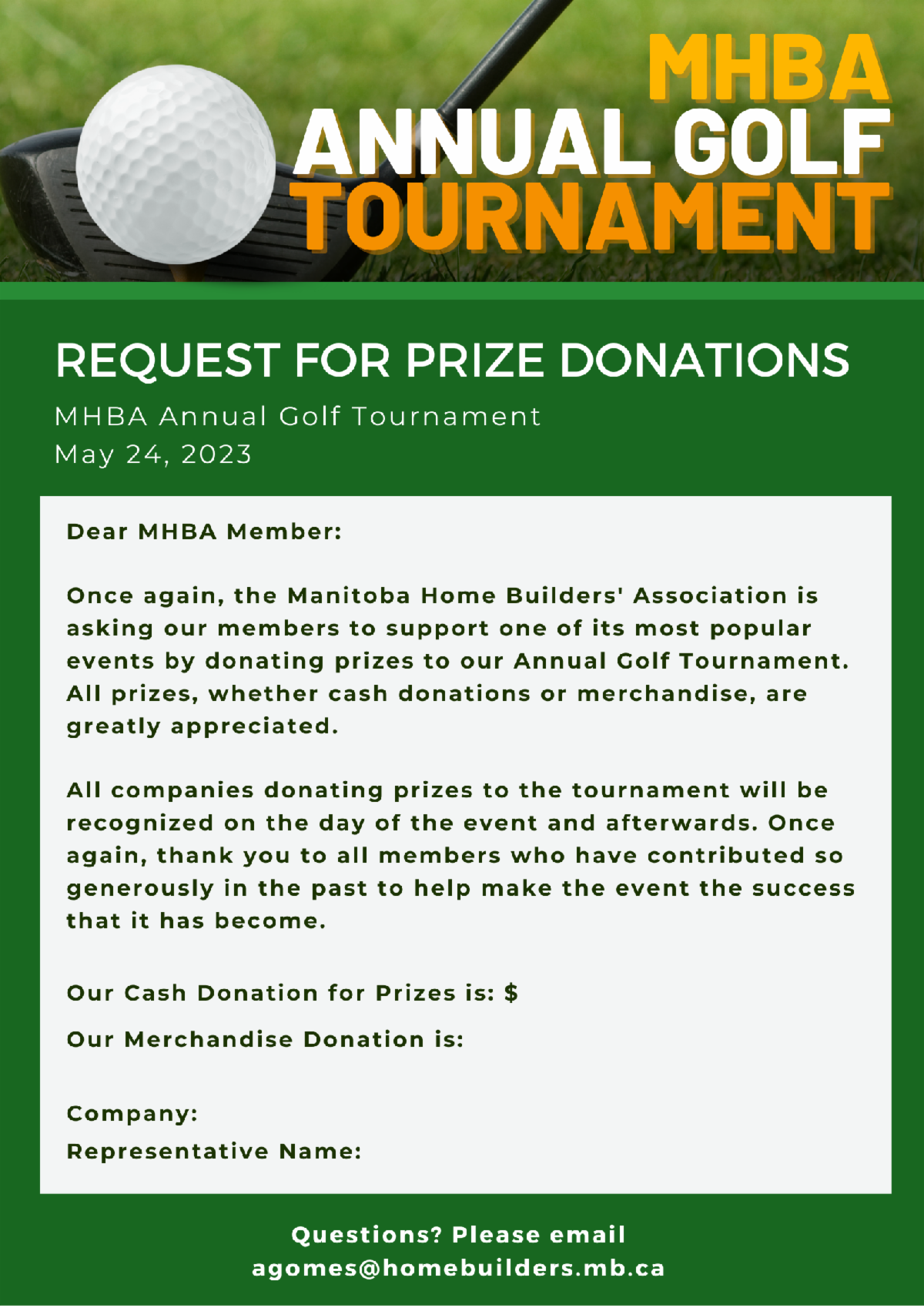 MHBA Annual Golf Tournament - Prize Donations Needed! | |