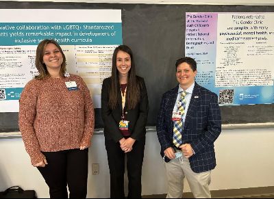 Above: Karissa Hannifan, Rachel Kupferman, and Brandy Brown present two abstracts describing development of simulation curriculum to support LGBTQ+ affirming care. | |